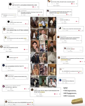 For this runway show, we crafted social first creatives rooted in strategy, platform native language, and storytelling, elevated by a refined visual direction. This balance translated into high performing results, positioning the show as the top performing fashion show by engagement on tiktok across luxury fashion benchmarks during this season.